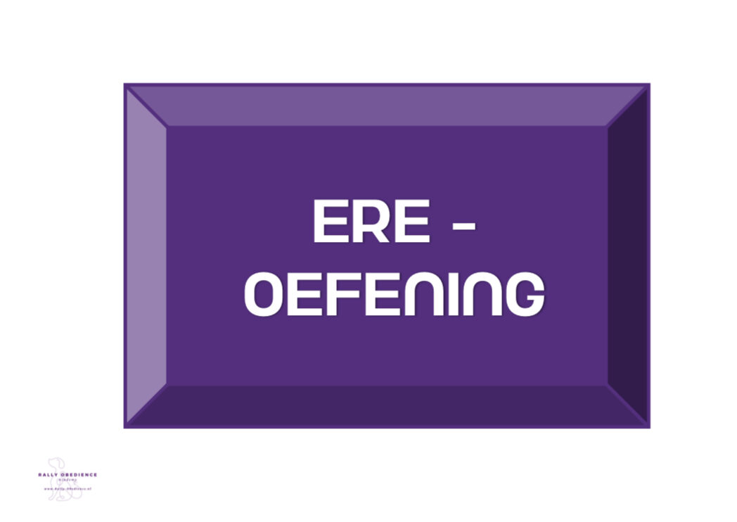 Bij dit bordje neem je plaats zodra je klaar bent met het parcours. Je legt je hond in de af positie en kijkt naar de persoon die na jou het parcours loopt. Zodra deze persoon over de finish is gekomen, verlaat je de ERE oefening samen met je hond.